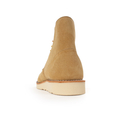 #8167は1953年に発売された#766をベースにベージュ色のラフアウトレザーであるホーソーン・アビリーンを使ったモデルです。このレザーは、当時アメリカで主にペコスブーツなどウエスタン系のブーツやアウトドア・ブーツに使われていたものです。レザーの起毛面を薄くスライスしてつくる多くのスエードレザーと違い、レザーの繊維密度が最も高い部位である銀面(レザー表面)を内側に使い起毛面を外側に使う、つまりレザーを裏返して使うラフアウトレザーは、元々アウトドア用の靴に多く用いられるものでした。履き込んでいくと汚れなども深い味わいとなる、経年変化が楽しめるレザーです。