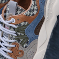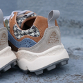 フラッグシップモデル「YAMANO」が体現するブランドのコンセプトに新たなデザインライン・新規の素材の使用・新カラーコンビネーションなど新たな再解釈が加えられた「YAMANO3」。 FlowerMOUNTAINが積み重ねてきたアーバンとアウトドアが融合した世界観がストレートに表現。今作ではアッパーにハリスツイードを使用した秋冬シーズンに最適な1足に仕上がっています。