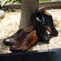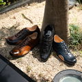 three generations originalは、ノーズ(靴の先端)は少し長め。スマートなシルエットのラストに、巻き上げた革ソールとのコンビンーション。履くとトゥ(先)が少し上がり、綺麗なフォームになります。縫い付けは1足1足職人の手縫い仕上げ。アッパーのスマートな顔と手縫いのステッチや天然皮革の素材感がカジュアルな雰囲気をプラスし、バランスの良さが人気の理由かもしれません。落ち着いたキレイ目カジュアルに大活躍のカジュアルシューズです。オフスタイルにおすすめ。