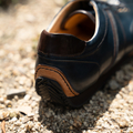 ドライビングに適した「ペダリングソール」を採用。 アクセル、ブレーキ、クラッチのペダル操作に合わせ、爪先はソールを薄くし、ペダルを踏む感覚がわかりやすい仕様に。爪先部分のソールが薄くてもクッション性のあるインソールを使用しており、快適性は保っています。また、ソールの爪先と踵部分はステッチをかけ、剥がれ防止に。