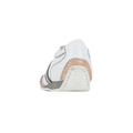 爪先からの縦ラインが際立つデザインが、よりスマートに見えるアッパーモデル。 ノーズ(靴の先端)は少し長めのスマートなシルエット。履くとトゥ(先)が少し上がり、エレガントで美しいフォルムが仕上がります。ネイビーとホワイトのカラーコンビは、清潔感があってキレイ目コーデにもカジュアルにも合わせやすいデザインです。
